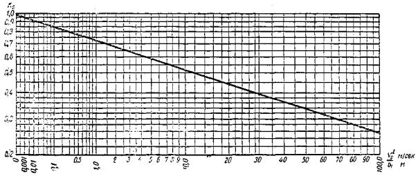 где υ0 - средняя скорость течения у опоры, м/сек; K1 - коэффициент, зависящий от формы лобовой грани опоры (см. табл. 44); K2 - коэффициент, зависящий от расчетной ширины опоры b1 и скорости υ0 (рис. 17), причем расчетную ширину опоры b1 находят по табл. 44; K3 - коэффициент, зависящий от глубины набегающего потока H (вне воронки размыва) и расчетной ширины опоры (рис. 18); d - диаметр наиболее крупных фракций грунта (для песков d = 0).