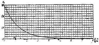 Рис. 18. Коэффициент K3 в зависимости от глубины набегающего потока H (вне воронки размыва) и расчетной ширины опоры При пользовании указанной формулой надо иметь в виду, что на ряде периодических водотоков, а также на некоторых участках горных рек (обычно при υ0 > 5 - 6 м/сек) значение hв получается несколько завышенным. Значения коэффициента K1 в зависимости от формы лобовой опоры