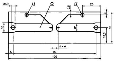 1. Испытание на изгиб не проводят, если длина выводов менее 8.3.2 Плавкие вставки для поверхностного монтажа Плавкие вставки должны быть закреплены на испытательной плате, представленной на рисунке 3. Испытательную плату с плавкими вставками на нижней стороне помещают в зажимное устройство для