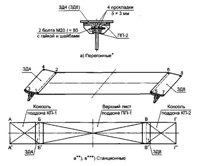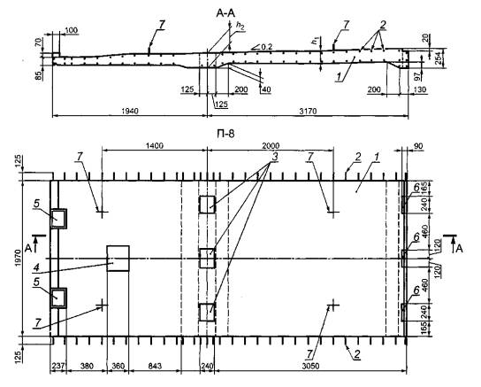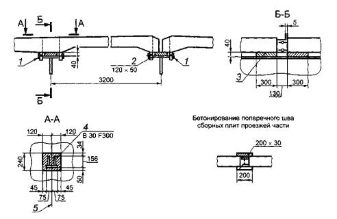 5.1.2 Форма и размеры плит должны соответствовать рабочим чертежам. Сборочный чертеж плит марок Пф1-8, и Пф2-8, представлен на рисунке А.1, поперечный разрез пролетного строения - на рисунке А.2. Схема установки автодорожных плит на главные балки представлена на рисунке А.3. Вариант соединения с главными балками на высокопрочных болтах представлен на рисунке А.4.