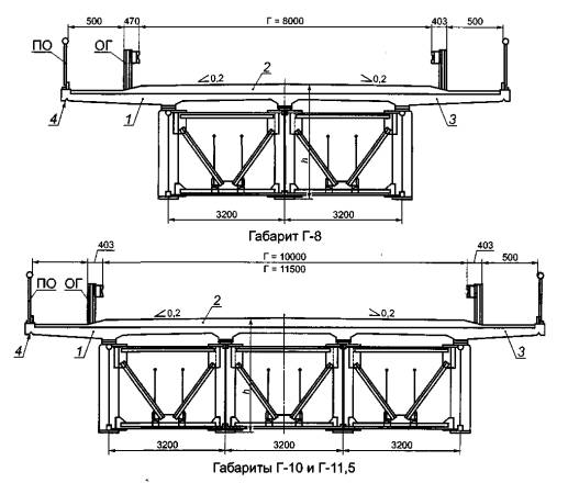 - габарит проезда (расстояние между ограждениями проезда) по [2];