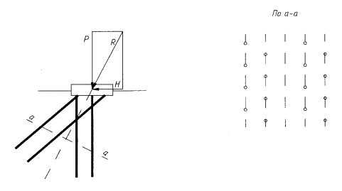 Рис. 8 2.2.14. При проектировании усиления углы наклона буроинъекционных свай и схему их расстановки следует принимать, стремясь к передаче на сваи осевых нагрузок, исключая по возможности моментные и горизонтальные нагрузки. 2.2.15. При проектировании усиления необходимо учитывать возможное изменение статической схемы работы конструкций, например, фундаментной плиты, в связи с переносом части нагрузки на буроинъекционные сваи (рис. 9).