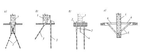Рис. 5 Глава 1. ОСНОВНЫЕ ПОЛОЖЕНИЯ.1.1. Общие принципы проектирования усиленияА. Усиление грунтов основания и фундаментов 1.1.1. Основной задачей при проектировании усиления оснований и фундаментов является правильный выбор вида усиления, определение и конструирование его отдельных элементов. При усилении буроинъекционными сваями это определение: - несущей способности свай по грунту и материалу ствола; - основных параметров свай, их длины и диаметра, угла наклона, величины заделки в стены или фундаменты; - общего количества свай на объекте и принципа их расположения в плане; - стадийности работ и способа их производства; 1.1.2. Необходимыми критериями при проектировании усиления оснований и фундаментов, обеспечивающими прочность, устойчивость и долговечность сооружений, являются предельно допустимая осадка и разность осадок частей или отдельных фундаментов, приемлемые для данной конкретной конструкции с точки зрения сохранения ею прочности и эксплуатационной пригодности. 1.1.3. При проектировании усиления для каждого здания или сооружения необходимо прогнозировать ожидаемые абсолютные осадки и разности их в отдельных точках сооружения в плане до усиления и после него. Величины осадок зависят от: - инженерно-геологических и гидрогеологических условий месторасположения реконструируемого или реставрируемого объекта; - интенсивности нагрузок в отдельных его частях, а также интенсивности загружения отдельных частей здания при его реконструкции в связи с заменой перекрытий, надстройкой и т.п. - физико-механических характеристик грунтов основания, залегающих на различных глубинах; - способности сооружения следовать за осадками грунта, иначе говоря, от общей его жесткости или жесткости отдельных его конструктивных элементов. 1.1.4. Началу проектирования усиления должны предшествовать инженерно-геологические изыскания на участке размещения объекта (2, 6, 8). Данные этих изысканий должны содержать достаточно полное описание конструкций существующих фундаментов, грунтов основания на требуемую глубину и их физико-механические характеристики, а также сведения о наличии и степени агрессивности грунтовых вод. Инженерно-геологические изыскания должны осуществляться в соответствии с техническим заданием организации, выполняющей проектирование усиления. Основные требования к инженерно-геологическим изысканиям изложены в соответствующей Главе СНиП (15). 1.1.5. В результате проведения инженерно-геологических изысканий должны быть получены следующие данные о: - местоположении и рельефе территории объекта усиления, климатических и сейсмических условиях, ранее выполнявшихся исследованиях и проводив3ихся усилениях существующих фундаментов, грунтов основания; - типе, конструкции, материале, глубине заложения существующих фундаментов, степени их сохранности, механических и прочностных характеристиках материала; - геологическом строении, литологическом составе толщи грунтов, их состоянии и физико-механических свойствах, наблюдаемых неблагоприятных физико-геологических и инженерно-геологических явлениях (карст, оползни, просадки и набухание грунтов, горные подработки и т.п.); - гидрогеологических условиях с указанием абсолютных отметок уровней грунтовых вод, в том числе на период промерзания, сезонных и многолетних амплитудах и