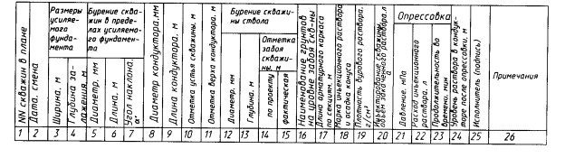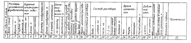 5. Марка и вид цемента 6. Состав инъекционного раствора, соотношение компонентов. 7. Состав бурового раствора. 8. Способ инъекции (через буровой став или инъекционную трубку) |