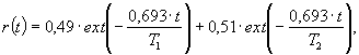 r(t) - функция, описывающая влияние миграции радионуклидов цезия в почву на мощность поглощенной дозы в воздухе и равная отношению мощности дозы в момент времени t над почвой с наблюдаемым распределением нуклидов к мощности дозы ds от источника, расположенного на границе раздела воздух-почва: для территорий России, за исключением Крайнего Севера