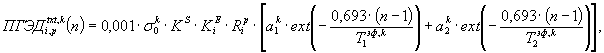 год после выпадений, обусловленной выпадениями k-го радионуклида, определяется выражением