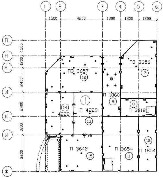 Схему составляют на плане этажа, на листе формата A3 или А2. На плане показаны сборные элементы в проектном положении. На схеме показано условное изображение и номер крепежного приспособления для каждого сборного элемента.