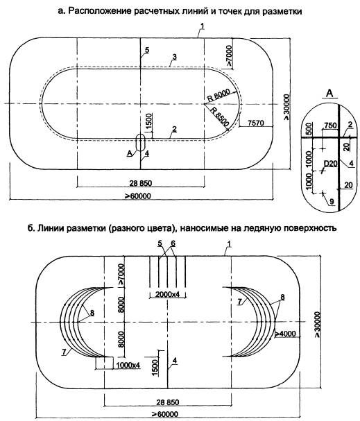 Рис. 5.1 Конструктивные схемы ледяных полей для хоккея, фигурного катания и шорт-трека