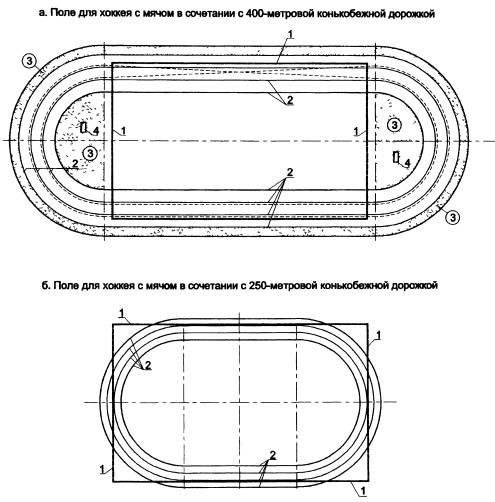 Рис. 3.12 Поле для хоккея с мячом и ледовая дорожка