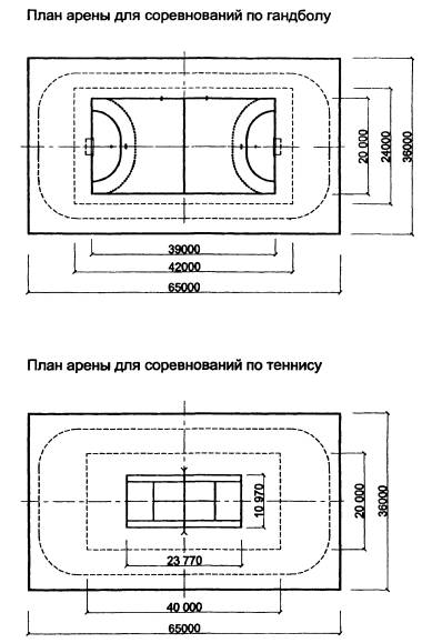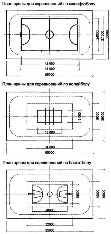 ]Система нормативных документов в строительстве СВОД ПРАВИЛ ПО ПРОЕКТИРОВАНИЮ И СТРОИТЕЛЬСТВУ ФИЗКУЛЬТУРНО-СПОРТИВНЫЕ ЗАЛЫ СП 31-112-2007 Часть 3 Москва Содержание ВВЕДЕНИЕНастоящий документ разработан на основании Государственного контракта № 213 от 04.12.2007 г. между Федеральным агентством по физической культуре и спорту и Международной академией футбольной и спортивной индустрии (МАФСИ) по разработке Сводов правил по проектированию и функционально-планировочным нормалям (решениям) физкультурно-спортивных сооружений для зимних и экстремальных видов спорта. Свод правил разработан ОАО «Институт общественных зданий» в развитие СНиП 2.08.02-89* «Общественные здания и сооружения» и является документом федерального уровня. В нём рассматриваются функциональные и технологические требования к проектированию физкультурно-спортивных сооружений с искусственным льдом. Они предназначены для соревнований и тренировочных занятий различного уровня, демонстрационных мероприятий, проводимых как в специализированных (для одного вида спорта), так и в универсальных (для нескольких различных видов спорта или зрелищных мероприятий) объектах, а также для массового катания. Настоящий документ разработан в помощь проектировщикам и в основном включает спортивно-функциональные параметры и требования к размерам различных типов ледовых полей и площадок с намораживаемой (ледяной) или синтетической (силиконовой) поверхностью. Свод правил разработан творческим коллективом под руководством Л.В. Аристовой (МАФСИ). Ответственные исполнители: канд. эконом: наук Л.В. Аристова (МАФСИ), канд. архитектуры A.M. Гарнец, канд. архитектуры Б.П. Анисимов (ОАО «Институт общественных зданий»), архитектор Ю.Г. Жура (ВНИИ ФК), д-р пед. наук Г.М. Панов (РГУ ФК), инж. Г.И. Гарифулина (ГУП МНИИП «Моспроект 4»), инж. А.В. Наголкин (НПФ «Поток-интер»), при участии: канд. техн. наук Н.В. Товарас, инж. О.Г. Воронков, инж. А.С. Колесников (ООО «НПФ «Химхолодсервис»). Научный редактор текста - канд. архитектуры А.М. Гарнец. Компьютерную графику выполнили: канд. техн. наук В.Ф. Кротюк и канд. техн. наук В.И. Цыганов (ОАО «Институт общественных зданий»). СВОД ПРАВИЛ ПО ПРОЕКТИРОВАНИЮ И СТРОИТЕЛЬСТВУ
