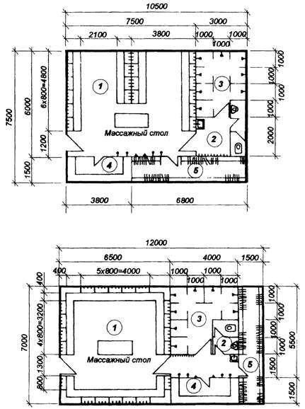 Рис. 4.4 Варианты планировки раздевалок для фигурного катания