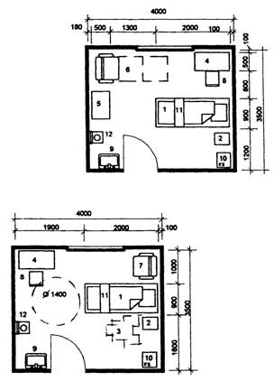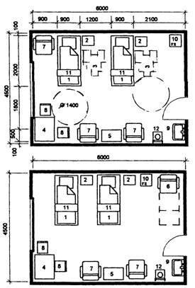 10. Холодильник; 11. Столик надкроватный; 12. Кресло-судно передвижное.