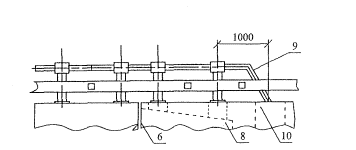 8 - переходная плита мостового сооружения, 9 - концевой участок трубы, 10 - анкерный блок в теле насыпи Рис. 7а