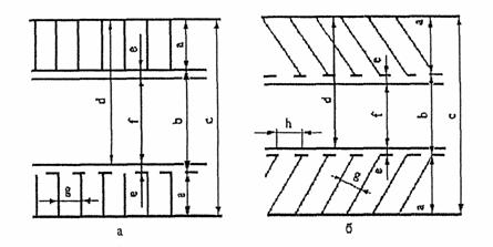 Рис.2 Основные схемы расстановки автомобилей на стоянке: а - прямоугольная; б - косоугольная