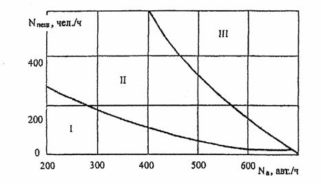 Рис. 3 Области применения пешеходных переходов различных типов: I - нерегулируемые переходы; II - переходы со светофорным регулированием; III - пешеходные переходы в разных уровнях (надземные и подземные) Целесообразность введения светофорного регулирования, строительства пешеходных переходов в разных уровнях на дорогах II и III категорий в каждом конкретном случае определяется исходя из значений и соотношения интенсивности движения пешеходных и транспортных потоков на основе результатов технико-экономических расчетов. Список литературы1. ГОСТ 23457-86 Технические средства организации дорожного движения. Правила применения. 2. ГОСТ Р 51256-99 Технические средства организации дорожного движения. Разметка дорожная. Типы и основные параметры. Общие технические требования. 3. Методические указания по определению состава объектов автосервиса и их размещения на автомобильных дорогах общегосударственного и республиканского значения в РСФСР. РСН 62-86 / Гипродорнии. - М.: ЦБНТИ Минавтодора РСФСР, 1987.-64 с. 4. Наставление по службе дорожной инспекции и организации дорожного движения Государственной инспекции безопасности дорожного движения Министерства внутренних дел Российской Федерации. Утверждено приказом МВД России от 8 июня 1999 г. № 410. 5. Обеспечение безопасности движения при размещении придорожных сооружений обслуживания участников движения. Методические рекомендации. - М., ВНИИБД МВД СССР, 1984.-22 с. 6. Правила установления и использования придорожных полос федеральных автомобильных дорог общего пользования. Утв., постановлением Правительства РФ от 1 декабря 1998 г. № 1420. 7. Применение искусственных неровностей на улицах и дорогах. Методические рекомендации. - М., ГУГИБДД МВД России, 2000.-14 с. 8. Рекомендации по обеспечению безопасности движения на автомобильных дорогах. - Отрасл. дор. метод. док./Росавтодор Минтранса России. - М. 2002. - 220 с. 9. СНиП 2.05.02-85 Автомобильные дороги. 10. СНиП 2.07.01-89 Градостроительство. Планировка и застройка городских и сельских поселений. 11. СНиП 23-05-95 Естественное и искусственное освещение. 12. Указания по обеспечению безопасности дорожного движения на автомобильных Дорогах. ВСН 25-86. Минавтодор РСФСР. - М.: Транспорт, 1988.-183 с. 13. Хоняк Я.В., Гончаренко Ф.П., Копилевич С.Л. Инженерное оборудование автомобильных дорог. - М.: Транспорт, 1990-232 с. |