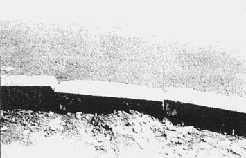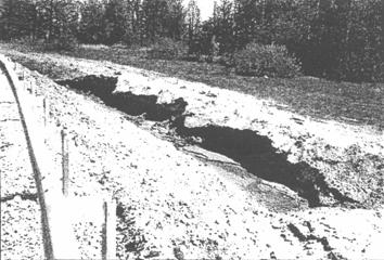 Рис. 5. Вымывание грунта из-под кювета, укрепленного цементобетоном