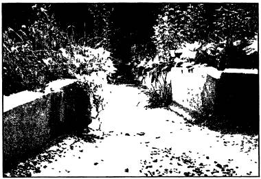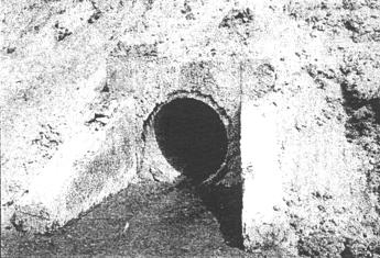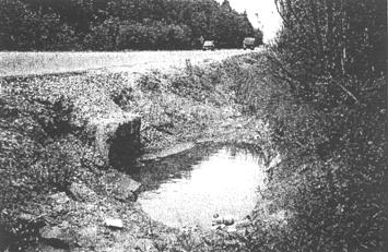 Рис. 27. Заиленный водопоглотитель 4. МЕТОДЫ УСТРОЙСТВА КОНСТРУКЦИЙ ДОРОЖНОГО ВОДООТВОДА И ЕГО СОДЕРЖАНИЕРоли водоотводных устройств в дорожном строительстве уделяется недостаточное внимание как в индивидуальных и типовых решениях, так и в нормативном обеспечении, что является одной из главных причин преждевременного деформирования и разрушения водоотводных сооружений, а также нарушения требуемого транспортно-эксплуатационного и природоохранного функционирования автомобильной дороги и сооружений на ней. Строительство экспериментальных участков с необоснованным применением на них новых водоотводных конструкций, низкий уровень производства работ, отсутствие необходимой техники и проведения работ по своевременному содержанию еще больше усугубляют существующее положение. Для правильного эксплуатационного содержания дорожного водоотвода недостаточно только замечать происходящие на видимых частях водоотводных сооружений процессы, необходимо знать конструктивные особенности каждого сооружения и уметь сопоставлять происходящие с конструкцией процессы с ее возможностями. Далее кратко рассмотрены методы строительства и содержания конструкций дорожного водоотвода, применяемые в России и зарубежных странах. Поперечные уклоны проезжей части и обочин Согласно схеме 1, водоотвод с поверхности автомобильной дороги осуществляется за счет придания поперечному профилю проезжей части и обочин уклонов. В период эксплуатации для обеспечения водоотвода поверхность обочин периодически планируется и профилируется автогрейдером с приданием им проектного уклона. Трещины, выбоины, просадки в покрытии и участки разрушений обочин своевременно ремонтируются во избежание застоя в них воды и ее дальнейшей миграции в нижележащие слои дорожной одежды. Водопропускные трубы Строительство водопропускных труб регламентировано в России нормативными документами, рекомендациями, методическими пособиями и ведется из конструкций в соответствии с действующими типовыми проектами. Методы ведения строительства водопропускных труб широко освещены в этих документах, поэтому целесообразнее в данной обзорной информации остановиться на принципах содержания дорожных водопропускных труб в эксплуатационный период. Содержание водопропускных труб является неотъемлемой частью комплексной системы содержания автомобильной дороги. На прочность и устойчивость трубы помимо качества содержания оказывают влияние величина продольного уклона, фильтрующая способность грунтов основания и земляного полотна, характеристика водостока, длительность подтопления, сейсмичность, наличие твердого стока. К работам по содержанию водопропускных труб относятся: очистка элементов труб от пыли, грязи, снега, льда; расчистка русла от наносов; пропуск паводковых вод, работы по защите труб от наводнений, заторов, размывов, наледей; технический учет труб и их состояния. К текущему ремонту относятся: исправление ограждающих и сигнальных устройств на проезжей части и земляном полотне дороги над трубой; ямочный ремонт покрытия и исправление отдельных слоев дорожной одежды; заделка трещин на видимых конструктивных элементах труб, заполнение швов, выравнивание лотков трубы и русла около трубы, устранение просадок около трубы и размыва откосов насыпи, л