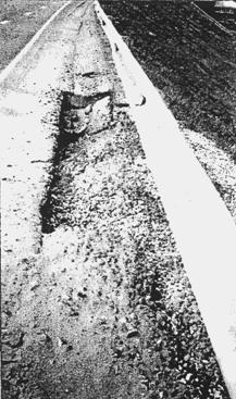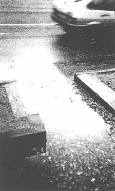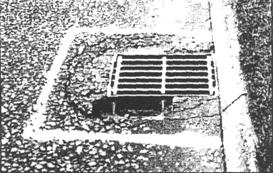 Рис. 26. Не справляющийся с объемом притекающей воды водопоглотитель Неудовлетворительный сбор и отвод поверхностных вод на автомобильной дороге Москва - Жуковский в первую очередь были обусловлены тем, что на стадии проектирования расчеты величины максимального дождевого стока и пропускной способности водопоглотителей выполнены не были. Последствия неверного проектного решения усугубились низким уровнем производства строительных работ (необходимые продольные уклоны выдержаны не были, бордюр устанавливался с нарушением технологии, входные участки водопоглотителей омоноличены не были), а также невыполнением работ по содержанию водопоглощающих сооружений в удовлетворительном состоянии в течение эксплуатационного периода. Рассмотренные случаи указывают на необходимость более серьезного подхода к вопросам проектирования поверхностного водоотвода в городских условиях и на внегородских автомобильных дорогах и учета возможных последствий от применения различных альтернативных водоотводных конструкций. Любые необоснованные отклонения от типовых решений, принятых в России применительно к системам поверхностного водоотвода, могут привести к неудовлетворительному функционированию водоотводных сооружений.