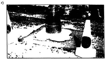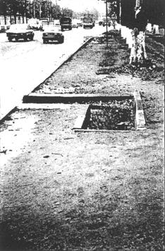 Рис. 34. Устройство бордюра механизированным способом (США) Совершенствуются и способы защиты бордюрных блоков от преждевременных разрушений. Например, в Европе широко распространено устройство упоров из двух рядов кирпича у основания бордюра и укрепление краевой полосы у бордюра цементобетонной смесью с добавками.