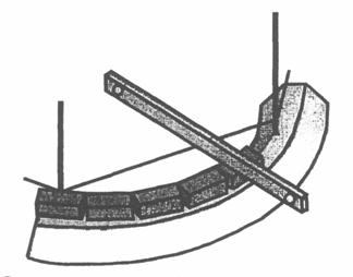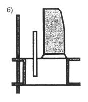 Рис. 30. Визирки: а - традиционная; б - «марка» После того как на промежуточных стойках будут отложены высотные отметки бордюрных блоков, между стойками натягивается шнур или тонкая веревка, а бордюры устанавливаются вплотную вдоль натянутого шнура (рис. 31).