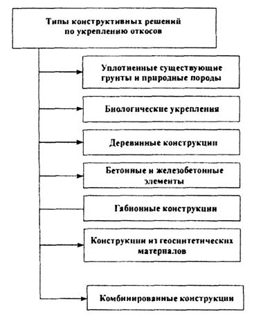 Рис. 1. Типы конструктивных решений по укреплению откосов