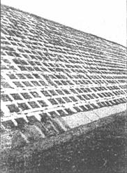 Для укрепления откосов используют главным образом злаковые многолетние травы. В течение 2 - 3 лет после посева они образуют плотный дерновой покров глубиной 5 - 12 см. Для образования хорошей дернины важное значение имеет тип кущения или вегетативного возобновления побегов. На откосах используются рыхлокустовые, корневищно-кустовые, плотнокустовые (плотнодерновые), корневищные и стержнекорневые (к ним относятся бобовые). Плетневое прорастающее укрепление Плетневое прорастающее укрепление (рис. 18) применяется при скорости течения воды более 1,5 м/с, а также в случаях, когда по расчету черенковая посадка оказывается недостаточной или нужно усилить черенковую посадку в местах размыва (в этом случае плетни располагаются через 5 - 10 рядов кустарника) [12].