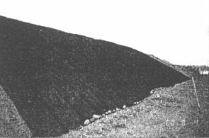 Рис. 16. Эрозионные процессы, происходящие на откосах, укрепленных только дерниной Посадка кустарников Для защиты периодически подтопляемых откосов насыпей и берегов от воздействия текучей воды при скорости течения до 2 м/с и волнобоя, а также откосов выемок и насыпей, сложенных глинистыми грунтами для предупреждения поверхностных сплывов, применяют сплошную посадку кустарника [12]. Укрепление откосов выемок посадкой кустарника должно производиться с учетом обеспечения условий видимости и незаносимости земляного полотна снегом, а укрепление откосов насыпей следует производить в бесснежных и малоснежных районах. Кустарниковые насаждения применяются на откосах любой крутизны. Кустарниковые породы, применяемые для укрепления откосов, должны иметь густую наземную поросль и мощную корневую систему, а также быть быстрорастущими и неприхотливыми. Для укрепления откосов, подверженных сплывам, рекомендуется посадка местных пород кустарниковых ив. Посадку рационально производить черенками, кольями и прутьями. Посадка может быть одиночная, гнездами, живыми изгородями, а также расстановка в канаву прорастающих плетней. Черенки заготавливают длиной 0,6 - 0,8 м и диаметром в нижней части не менее 2 - 3 см. Глубина посадки должна быть 0,45 - 0,60 м. Одиночная посадка применяется при скорости течения воды до 1 м/с и может производиться рядами или в шахматном порядке. Посадка гнездами производится при скорости течения воды более 1 м/с. При достаточном количестве посадочного материала гнездовую посадку можно производить и при меньших скоростях течения воды, так как такой вид посадки по сравнению с одиночной обеспечивает лучшую приживаемость и развитие растений. В каждое гнездо высаживают по 5 - 6 черенков, гнезда располагают в шахматном порядке или рядами. Густота посадки независимо от вида определяется расчетом. В зависимости от длительности затопления в многоводные годы рекомендуются кустарниковые насаждения следующих пород: - если затопление продолжается более 5 месяцев, надо высаживать иву белую кустарниковых пород; - при затоплении 3 - 5 месяцев, кроме указанной выше породы, следует высаживать иву русскую, аморфу, ольху серую, черную (выращиваемую в кустарниковой форме); - при затоплении 1 - 3 месяца - все перечисленные выше породы, а также иву пурпурную, остролистную, каспийскую, конопляную, тамарисы ветвистый и изящный, розу коричную, морщинистую и собачью; - при затоплении не более 1 месяца - все вышеперечисленные породы, а также терн и скумпию. При скорости течения воды до 0,5 м/с и глубине до 1 м могут применяться и другие местные породы кустарника: черная и золотистая смородина, желтая акация, лох гребенщик, боярышник, бузина, жимолость, облепиха, барбарис, ежевика, бересклет, различные сорта ракитника, продолжительность затопления при этом должна быть не более 0,5 месяца. Заготавливать посадочный материал лучше всего ранней весной до начала движения сока. Схема посадки кустарников приведена на рис. 17.
