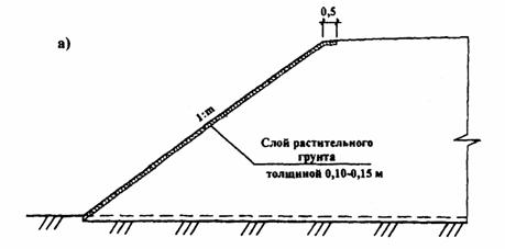 Примечания: 1. Гидропосев семян трав не применяется на откосах из намываемых песков. 2. В скобках указана высота насыпей для дорог I - III категорий.