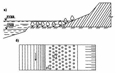 Рис. 17. Схема посадки кустарников: а - на подтопляемых