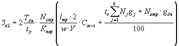где Nсмр - среднесписочная численность работников, занятых на строительно-монтажных работах на рассматриваемом объекте, за весь срок строительства, чел.; lтр - среднее расстояние ежедневной транспортировки работников за время строительства объекта, км; Т - срок строительства объекта, мес.; tр - среднее число рабочих дней в месяце; w - вместимость транспортного средства, чел.; V - средняя скорость движения транспортного средства, км/ч; См-ч - стоимость одного машино-часа транспортного средства, руб. 2.5. Потери в связи со снижением выработки у работников вследствие длительного пребывания в пути ЗТ2 определяются по формуле