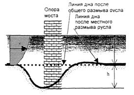 максимальная глубина местного размыва у опоры моста составит h =