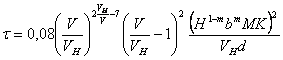 где 0,08 - размерный коэффициент пропорциональности, час/с; d - средний диаметр частиц донных наносов несвязного грунта, м. Табулированные значения относительного безразмерного масштаба времени τ/[(H1-m·bmMK)2/VHd] в зависимости от относительной скорости потока воды VNH приведены в приложении П. 3. 3.6. Безразмерная интегральная функция нестационарного процесса местного размыва имеет вид: