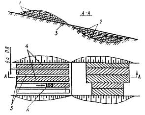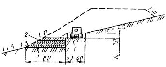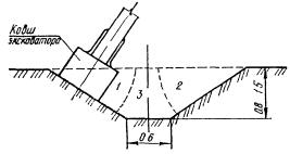 2.9. Для облегчения ориентировки и контроля процесса разработки выемки и во избежание переборов грунта на бровке выемки соответственно заданной крутизне откоса устанавливают короткое откосное лекало.