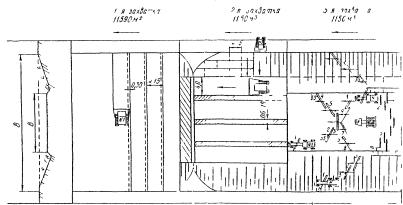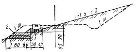2.11. Когда выемку вырабатывают до отметки, не доходящей на 0,2...0,3 м до проектной поверхности, разбивают основные точки поперечного профиля земляного полотна и кюветов (см. рис. 1):