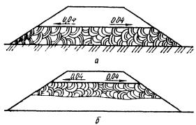 Требуемый коэффициент уплотнения грунта: 0,95...0,98 - в нижних слоях земляного полотна; 0,98...1,0 - в верхних. При оптимальной влажности грунта для достижения коэффициента уплотнения 0,95 ориентировочно назначают шесть-восемь проходов катка для связных и четыре-шесть - для несвязных грунтов; для достижения коэффициента уплотнения 0,98 - соответственно восемь-десять проходов катка для связных и шесть-восемь - для несвязных грунтов.