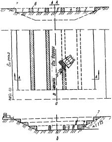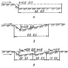 двумя колышками 7 и 8 фиксируют дно кювета (колышек 7 забивается на расстоянии 0,5B+hкn от оси выемки, а колышек 8 - на расстоянии 0,5B+hкn + a от нее).