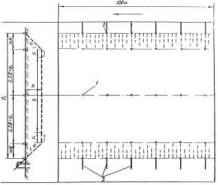 Рис. 1. Схема разбивочных работ при устройстве выемок глубиной до 12 м в равнинной местности