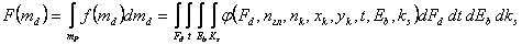 где φ(Fd, nгл, nk, xk, yk, t, Еb, Кs) - четырехмерная плотность вероятности распределения случайной величины изгибающего момента в плите от воздействия колес главной опоры; Fd - нагрузка на колесо главной опоры шасси расчетного воздушного судна;