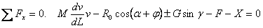 где М - масса самолета; G - вес самолета; V - скорость движения самолета; X - сила лобового сопротивления самолета; Y- аэродинамическая подъемная сила; F - силы трения колес самолета о поверхность ИВПП; R0 - тяга двигателя самолета; Из уравнений (1) найдем выражение нагрузки от колес главных опор самолета на покрытие ИВПП: