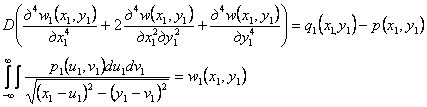 Полученные значения функции с(λ) возможно использовать при решении конкретных задач в прямоугольных координатах. Например, прогиб бесконечной плиты w(x,y) при действии на нее произвольной нагрузки q(х,у) может быть определен из решения дифференциально-интегральной системы
