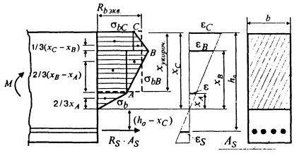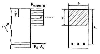 Приравнивая усилия сжатой зоны по обоим способам расчета, получим