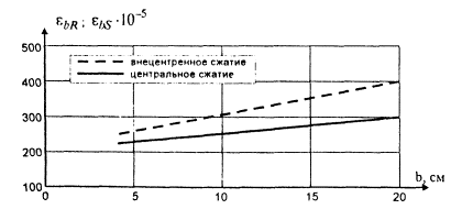 Рис. 1. Предельные деформации бетона σbR и εbR при центральном внецентренном сжатии