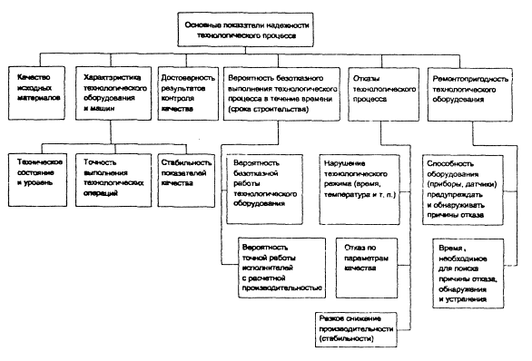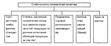 Рис. 2. Стабильность показателей качества строительной продукции В условиях функционирования тендера и сокращения количества объектов конкуренции возникает необходимость анализа деятельности конкурентов (строительных организаций), который осуществляется специалистами по маркетингу с целью исследования слабых и сильных сторон всех настоящих и потенциальных конкурентов; разработки прогнозов вероятной тактики и стратегии конкурентов в областях технической, технологической, финансовой, экономической и плановой политики. Таким образом, формируется база данных (сведений) о конкурирующих предприятиях и производимом ими строительном продукте - товаре. Конкурентоспособность проектов организации и производства работ должна устанавливаться на основе расчета основных параметров конкурентоспособности (рис. 1), базирующемся на количественной оценке основных показателей надежности технологического процесса (рис. 3) Расчеты должны выполняться по специальным программам на ПЭВМ.