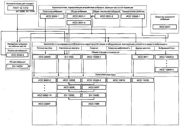 Дата введения - 2008-07-01 1 Область примененияНастоящий стандарт устанавливает общие требования к обеспечению вибрационной безопасности на производстве, транспорте, в строительстве, горных и других работах, связанных с неблагоприятным воздействием вибрации на человека. Настоящий стандарт устанавливает также структуру комплекса стандартов в области вибрационной безопасности и требования к этим стандартам. Настоящий стандарт распространяется на различные аспекты профессиональной деятельности, когда вибрация оказывает непосредственное неблагоприятное воздействие на человека в результате его прямого контакта с вибрирующей поверхностью машины, через объекты обработки (например, обрабатываемое изделие) или через объекты, имеющие с источником вибрации механическую связь и (или) связь других видов. Настоящий стандарт распространяется на вибрацию всех видов: периодическую, случайную, переходные процессы. Стандарт не распространяется на воздействие кратковременной вибрации в виде ударов и переходных процессов большой мощности, имеющих место в результате аварий и поломок машин, транспортных средств, механизированного инструмента и оборудования (далее - машины), которые могут повлечь за собой получение травм. 2 Нормативные ссылкиВ настоящем стандарте использованы нормативные ссылки на следующие межгосударственные стандарты: ГОСТ ИСО 8041-2006 Вибрация. Воздействие вибрации на человека. Средства измерений (ИСО 8041:2005, IDT) ГОСТ ИСО 10326-1-2002 Вибрация. Оценка вибрации сидений транспортных средств по результатам лабораторных испытаний. Часть 1. Общие требования (ИСО 10326-1:1992, IDT) ГОСТ 16519-2006 Вибрация. Определение параметров вибрационной характеристики ручных машин и машин с ручным управлением. Общие требования (ИСО 20643:2005, MOD) ГОСТ 24346-80 (ИСО 20643:2005) Вибрация. Термины и определения (ИСО 2041:1990, NEQ) ГОСТ 30873.2-2006 (ИСО 8662-2:1992) Ручные машины. Измерения вибрации на рукоятке. Часть 2. Молотки рубильные и клепальные (ИСО 8662-2:1992, MOD) ГОСТ 31191.1-2004 (ИСО 2631-1:1997) Вибрация и удар. Измерение общей вибрации и оценка ее воздействия на человека. Часть 1. Общие требования (ИСО 2631-1:1997, MOD) ГОСТ 31191.2-2004 (ИСО 2631-2:2003) Вибрация и удар. Измерение общей вибрации и оценка ее воздействия на человека. Часть 2. Вибрация внутри зданий (ИСО 2631-2:2003, MOD) ГОСТ 31191.4-2006 (ИСО 2631-4:2001) Вибрация и удар. Измерение общей вибрации и оценка ее воздействия на человека. Часть 4. Руководство по оценке влияния вибрации на комфорт пассажиров и бригады рельсового транспортного средства (ИСО 2631-4:2001, MOD) ГОСТ 31192.1-2004 (ИСО 5349-1:2004) Вибрация. Измерение локальной вибрации и оценка ее воздействия на человека. Часть 1. Общие требования (ИСО 5349-1:2001, MOD) ГОСТ 31192.2-2005 (ИСО 5349-2:2001) Вибрация. Измерение локальной вибрации и оценка ее воздействия на человека. Часть 2. Требования к проведению измерений на рабочих местах (ИСО 5349-2:2001, MOD) ГОСТ 31193-2004 (ЕН 1032:2003) Вибрация. Определение параметров вибрационной характеристики самоходных машин. Общие требования (ЕН 1032:2003, MOD) ГОСТ 31194.1-2004 (ИСО 13090-1:1998) Вибрация и удар. Меры безопасности при проведении испытаний с участием людей. Общие требования (ИСО 13090-1:1998, MOD) ГОСТ 31319-2006 (ЕН 14253:2003) Вибрация. Измерение общей вибрации и оценка ее воздействия на человека. Требования к проведению измерений на рабочих местах (ЕН 14253:2003, MOD) Примечание - При пользовании настоящим стандартом целесообразно проверить действие 