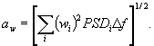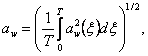 где aw(ξ) - текущее значение корректированного ускорения (поступательного или углового) как функция времени ξ; Т - период измерений. 3.1.5.2 уровень корректированного ускорения Lw: Уровень среднеквадратичного значения корректированного ускорения, дБ, определяемый формулой