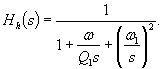 Передаточная функция полосового фильтра представляет собой произведение Hh(s)∙Hi(s). 5.6.3 Переходный фильтр Передаточная функция переходного фильтра представляет собой постоянный коэффициент умножения для сигнала ускорения на низких частотах и постоянный коэффициент умножения для сигнала скорости на высоких частотах:
