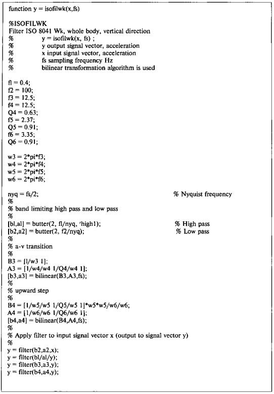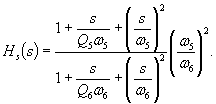 Передаточные функции фильтров, составляющих функцию частотной коррекции, определены применительно к сигналу ускорения через значения угловых частот ω1,..., ω6 (ωi = 2πfi, где fi - частоты, определенные в таблице 3, i = 1,..., 6) и добротности Q1, Q2, Q4, Q5, и Q6 [см. формулы (8) - (12)]. Функция частотной коррекции представляет собой произведение передаточных функций трех фильтров: полосового, переходного и ступенчатого. 5.6.2 Полосовой фильтр Передаточная функция полосового фильтра является произведением передаточных функций фильтров Баттерворта второго порядка нижних и верхних частот: Фильтр верхних частот: Фильтр нижних частот: