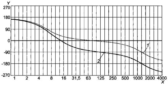 l) подогнать экспериментальную зависимость под теоретическую, полученную на шаге k), соответствующим выбором постоянной составляющей. Обычно это не составляет труда, поскольку типичная фазовая характеристика, приведенная к логарифмическому масштабу по обеим осям, близка к линейной в широком диапазоне частот. Это справедливо для всех функций частотной коррекции, рассматриваемых настоящим стандартом;