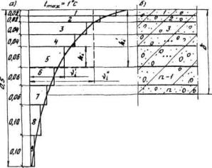 толщиной 0,18 м разбиваем на три части: верхнюю высотой 0,26 м (tтах = 0°С),