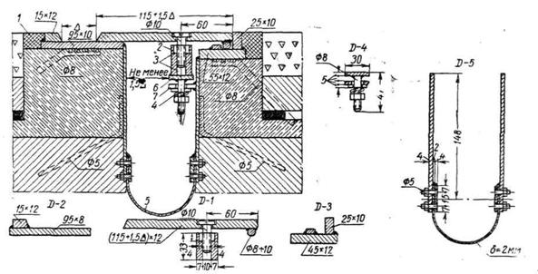 По первому варианту съемная плита состоит из двух одинаковых половин, соединенных между собой шарниром 4 (рис. 7). Для удобства осуществления шарнира съемная плита составлена из нижней пластины = 15 мм и верхней 8 = 5 мм.